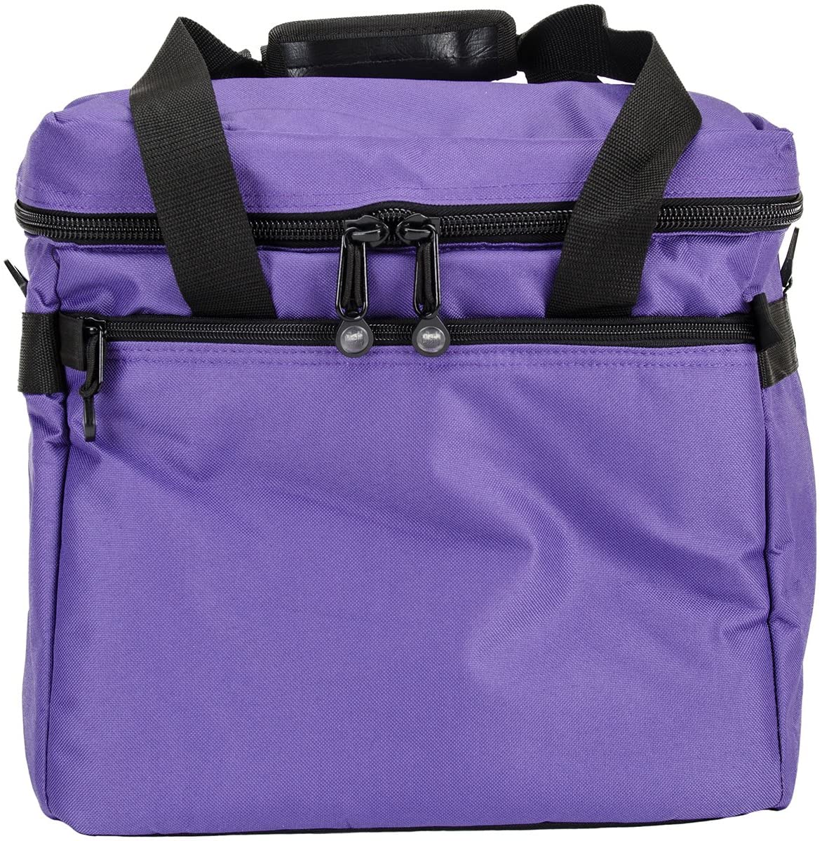 Purple padded Fit All Zippered tote with adjustable carry straps.